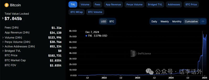 ETH DeFi 的话题我们之前聊的比较多,今天文章的最后,我们正好借着上文提到的 Runes报道再看看 BTC DeFi 方面的一些情况吧:
