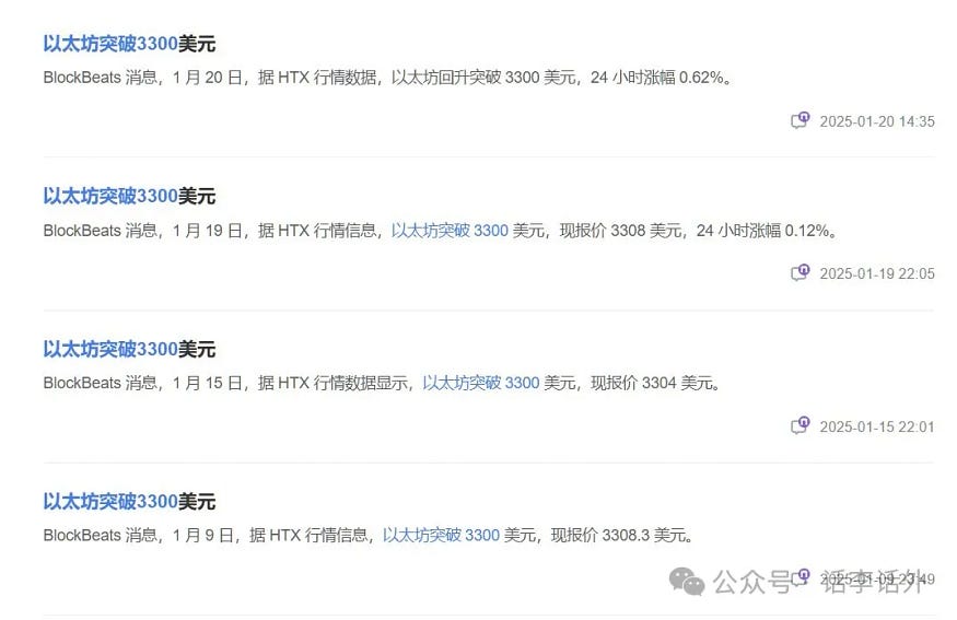 今天我还看到群里有伙伴也分享了一个比较有趣的图,以太坊持续突破 3300 大关哈哈。如下图所示。